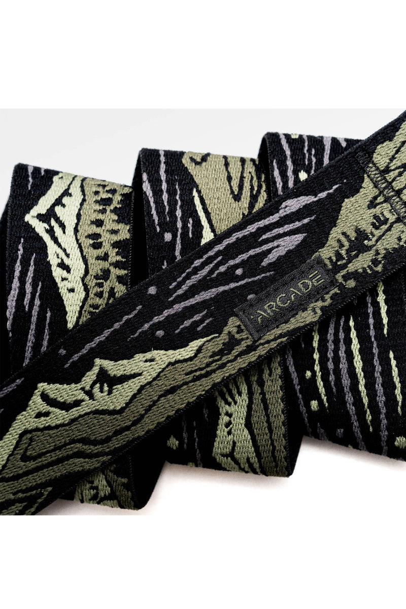 Off-grid and out there. The feeling of complete solitude is in Arcade's Out Of Range Belt in the colour Ivy Green. A performance webbed belt designed to keep comfort on your side.